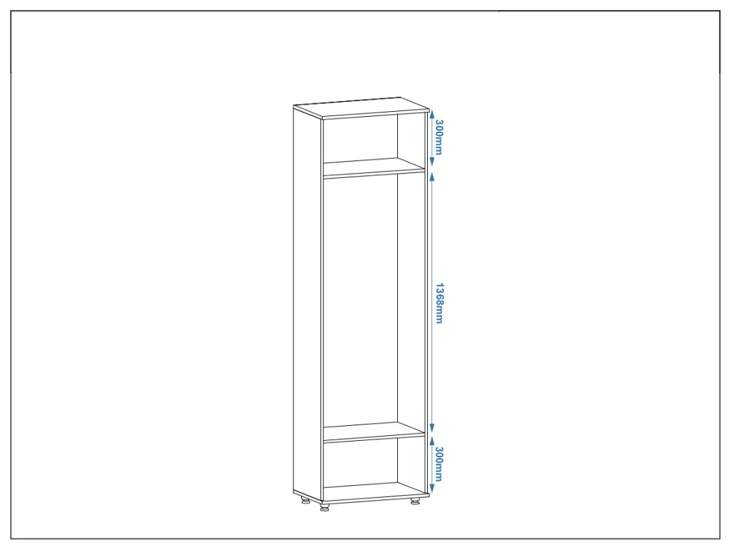 - Kompatibilní s menšími prostory: Rozměry skříně (šířka 60 cm, hloubka 38 cm, výška 208 cm) jsou ideální pro úzké předsíně a chodby.