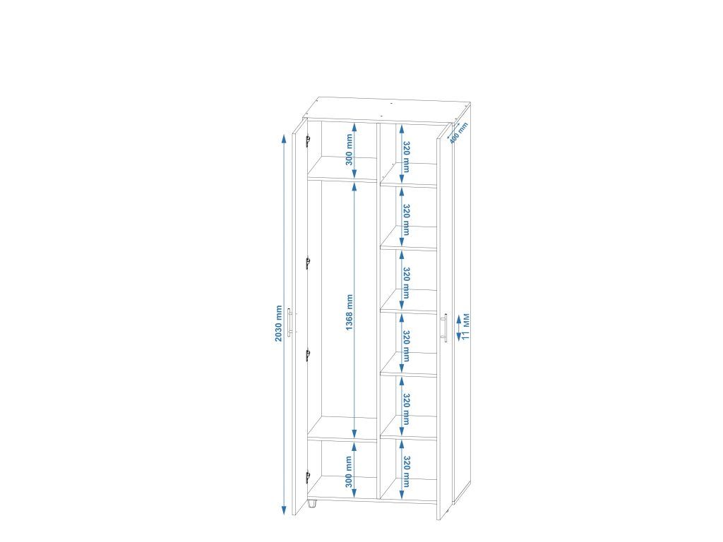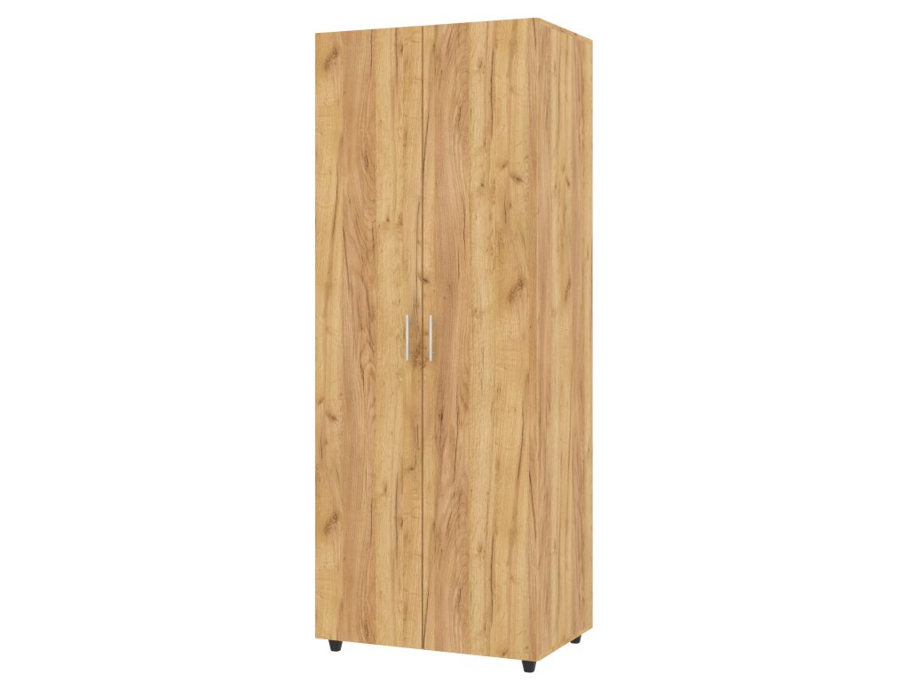 Tato dvoudveřová šatní skříň z kolekce MILANA je ideální volbou pro ty, kteří hledají kombinaci stylu a funkčnosti. S rozměry výška 207 cm, šířka 80 cm a hloubka 53,6 cm se skvěle hodí i do menších prostor, a přitom poskytuje dostatek úložného prostoru pro vaše oblečení.