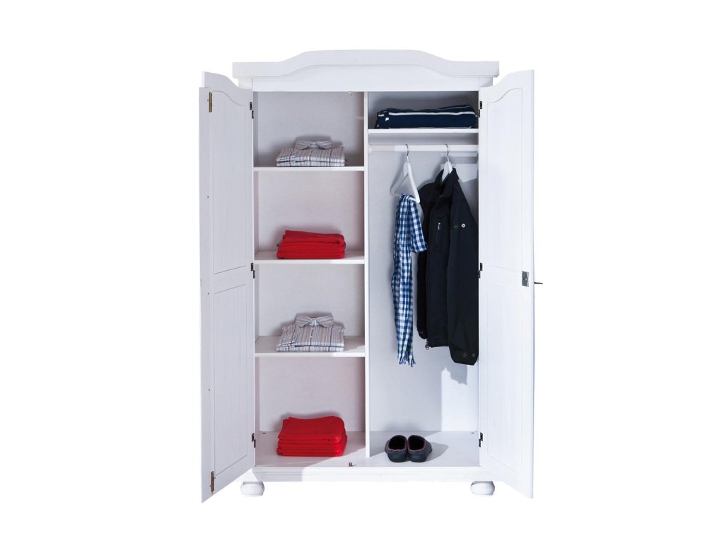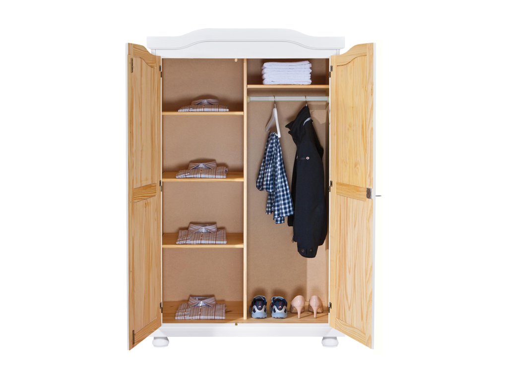 materiál masiv borovice, barevné provedení bílý lak prostor dělený na poloviny polovina šatní skříň s šatní tyčí a policí, v druhé polovině 3 variabilní police vnitřní nepohledové desky mohou být v provedení čirý nebo bílý lak