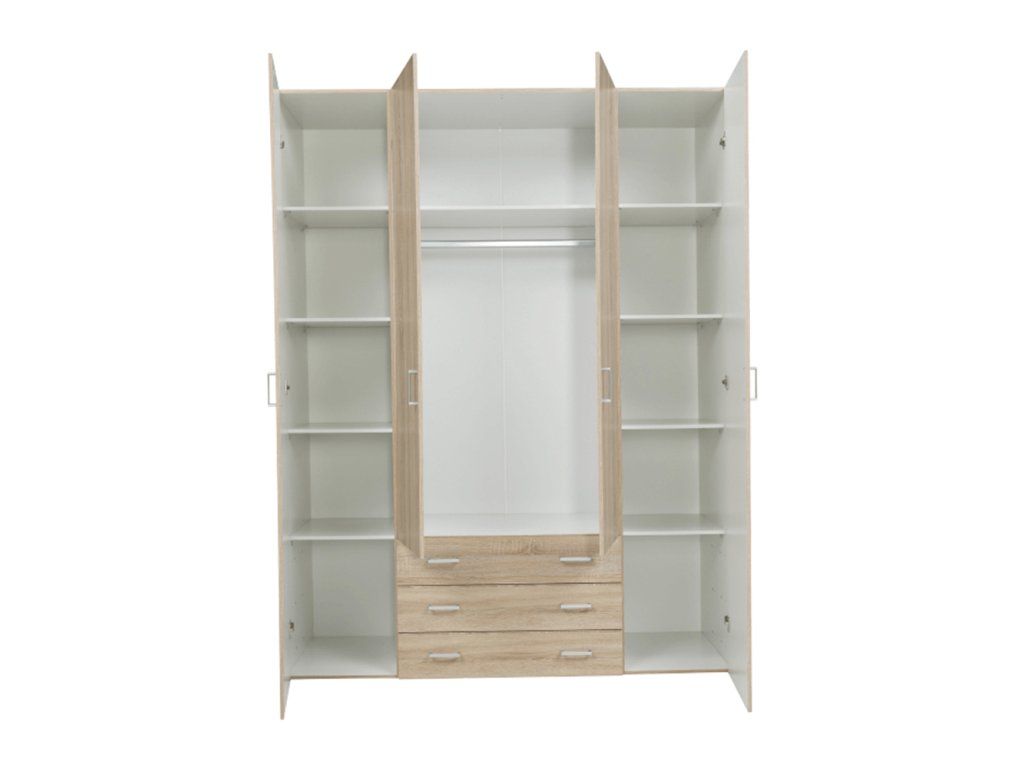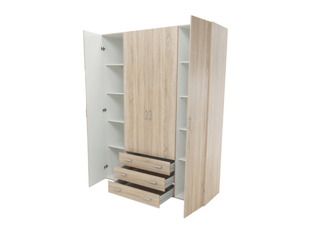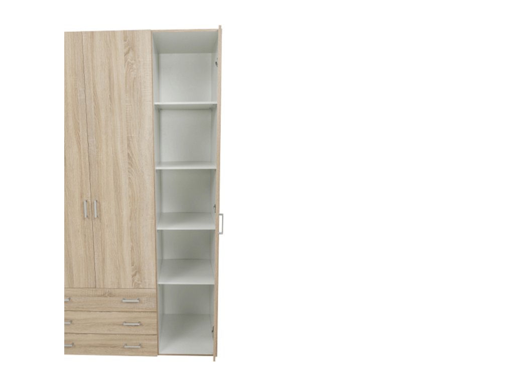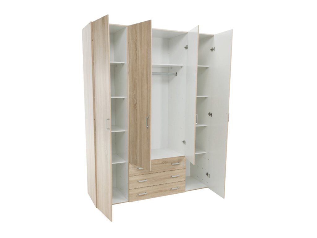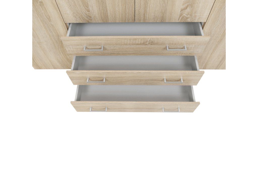 4 - dveřová skříň s věšákovou tyčí a policí, boční skříňky regálové, 3 šuplíky, GWEN 70429