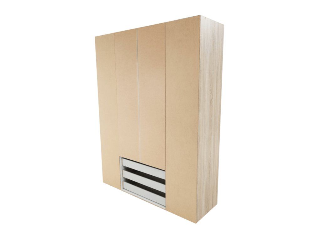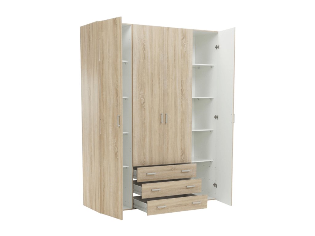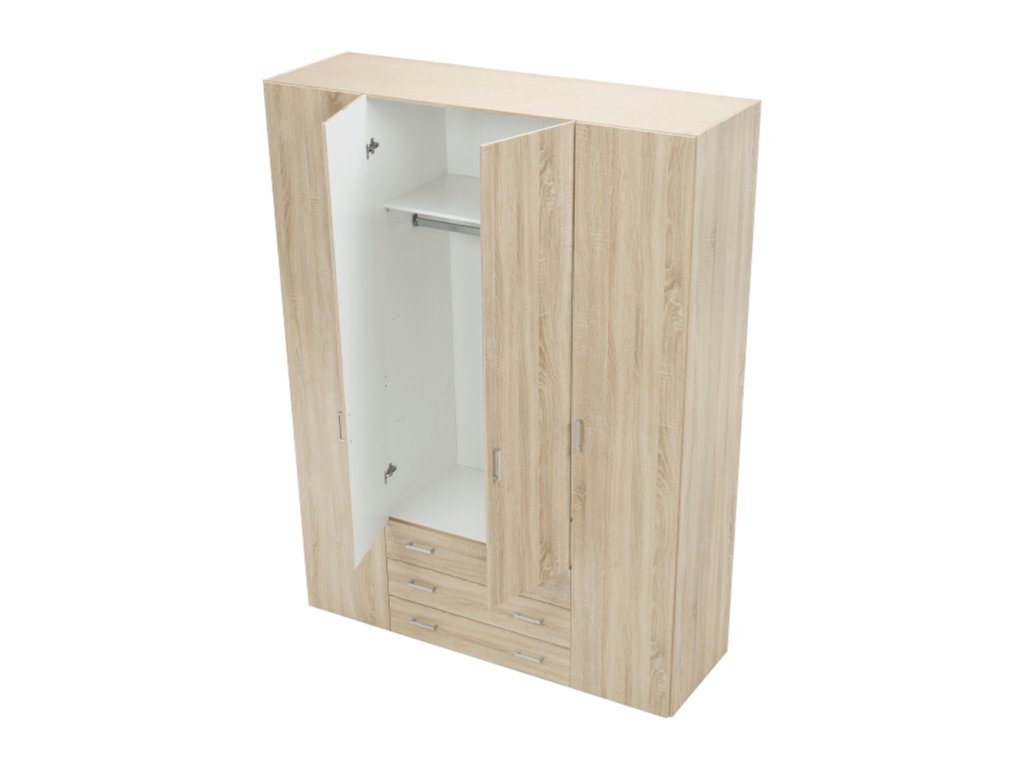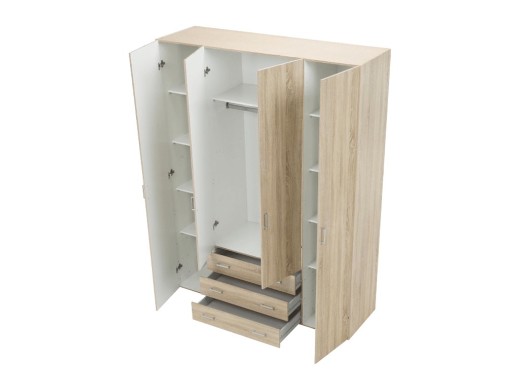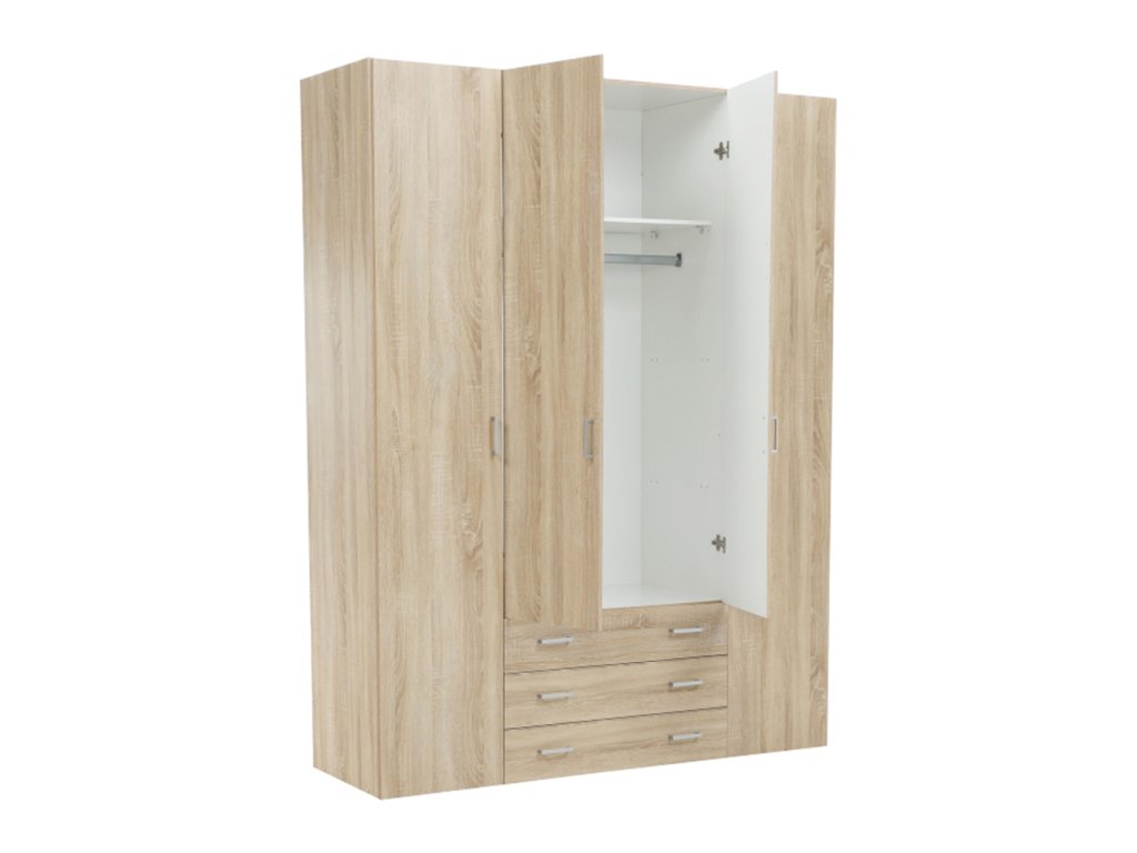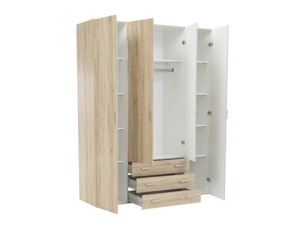 4 - dveřová skříň s věšákovou tyčí a policí, boční skříňky regálové, 3 šuplíky, GWEN 70429