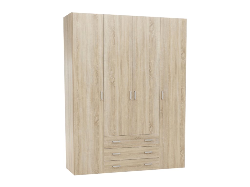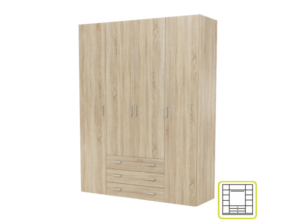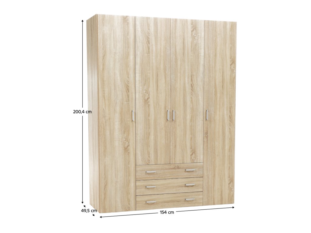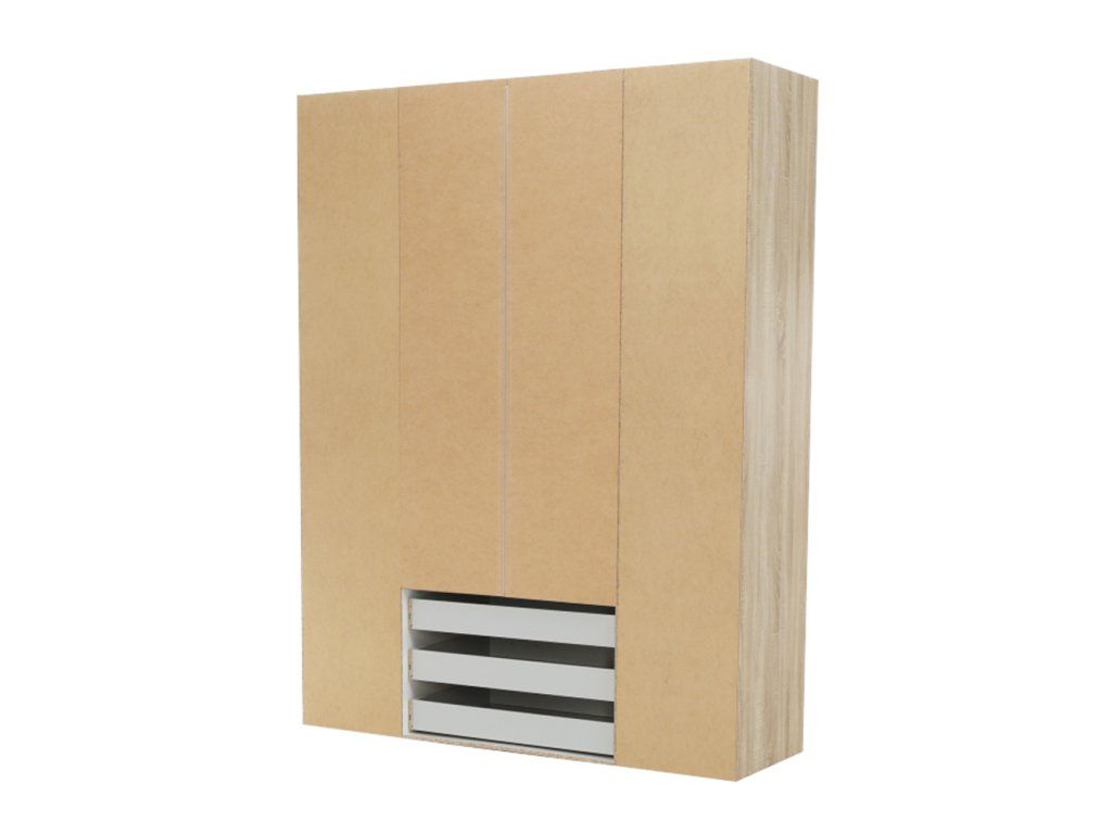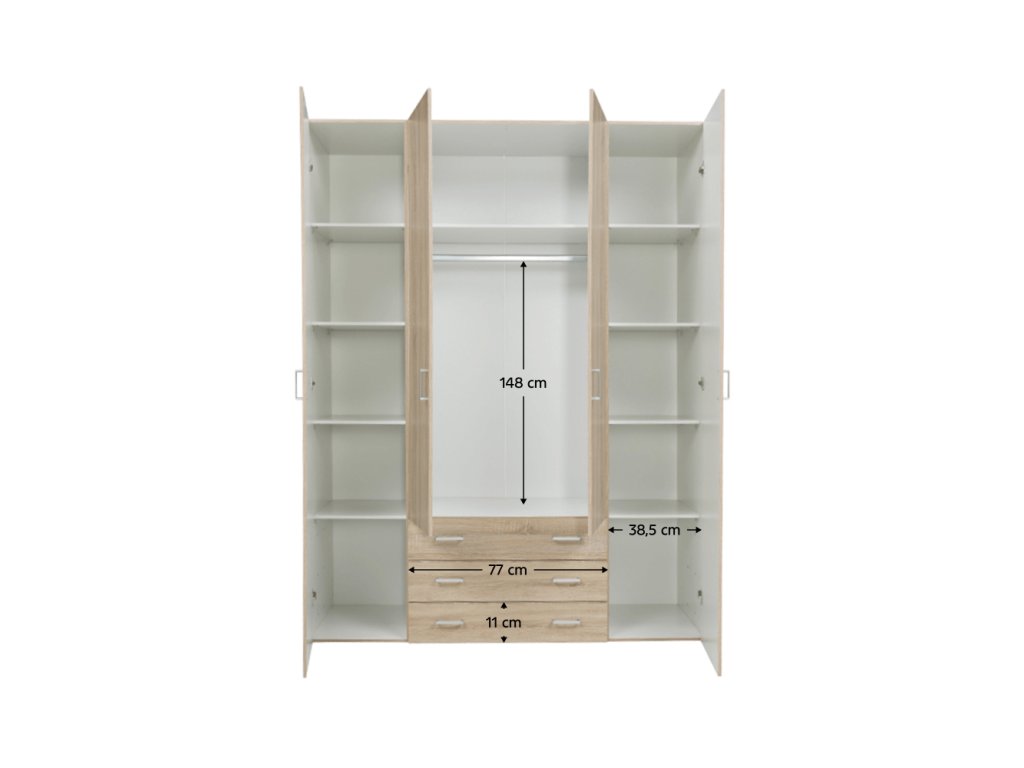 4 - dveřová skříň s věšákovou tyčí a policí, boční skříňky regálové, 3 šuplíky, GWEN 70429