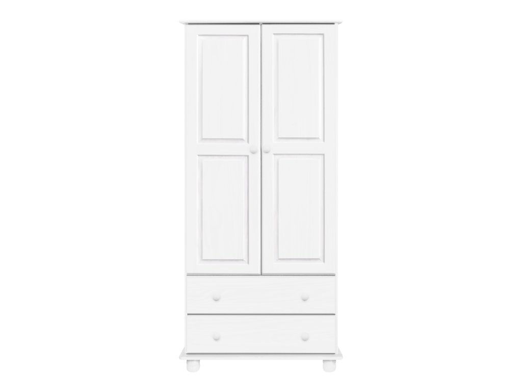 materiál masiv borovice, barevné provedení bílý lak dvě široké zásuvky s kovovými pojezdy v horní části šatní tyč a 3 police doporučený nástavec 8861B