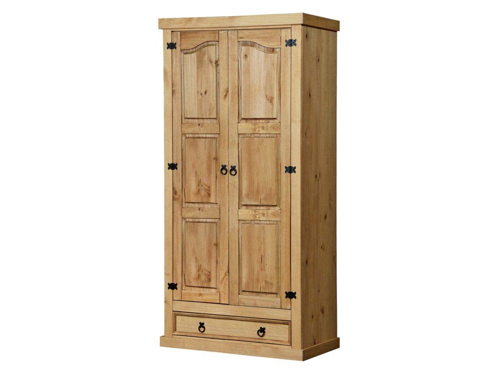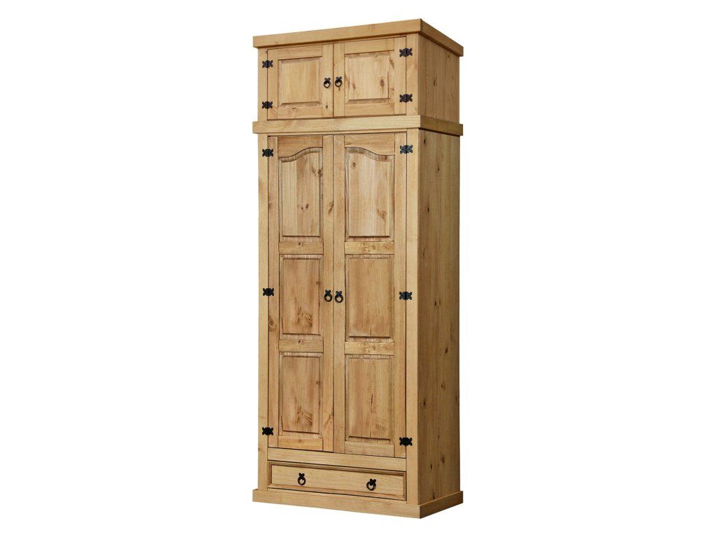 materiál masiv borovice voskovaná v medovém odstínu šatní skříň s šatní tyčí a policí na klobouky ve spodní části velká zásuvka, kovové ozdobné úchytky doporučený nástavec CORONA 16951 součást sestavy Corona