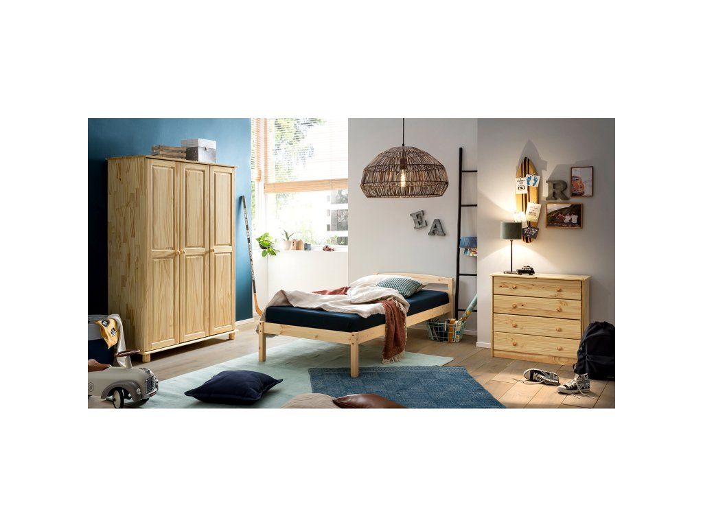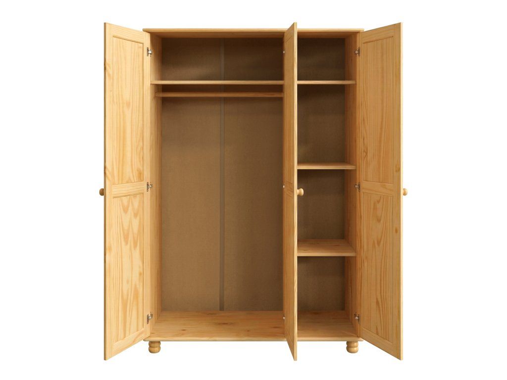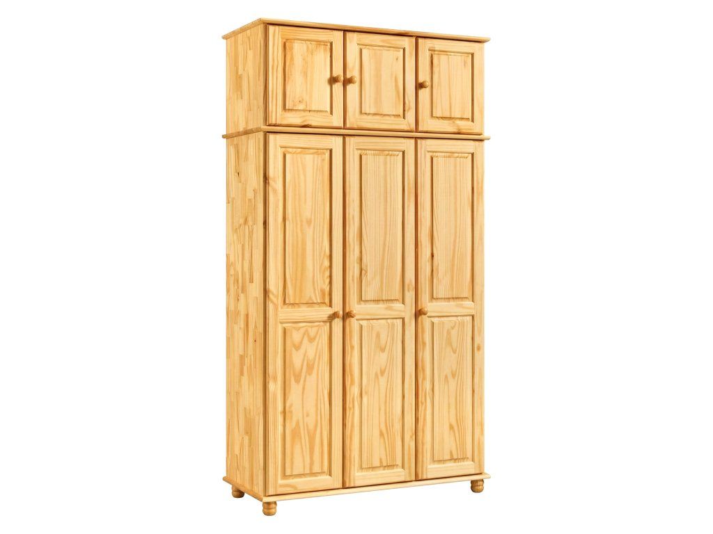 materiál masiv borovice, lakované provedení prostor dělený v poměru 2:1 širší část šatní tyč a police, užší část 3 variabilní police doporučený nástavec 8864
