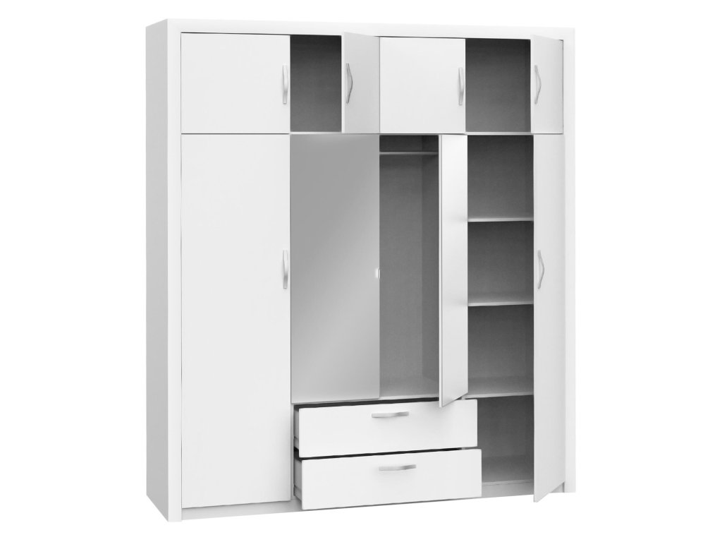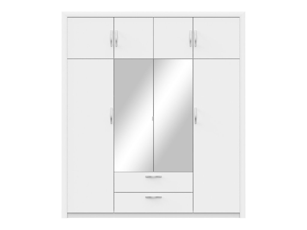 barevné provedení perleťově bílá prostor dělený v poměru 1:2:1, nástavec rozdělený na 2 stejné části je součástí skříně v každé užší části 3 police z toho 2 variabilní, rozměr police (š/h) 55 × 49 cm širší část zrcadlové dveře, šatní tyč, v dolní části 2 zásuvky s kovovými pojezdy rozměr zásuvky (š/h/v) 79 × 37 × 15 cm záda dutinkový plast