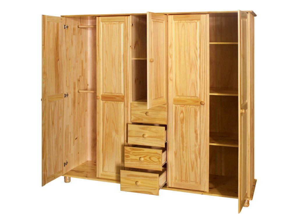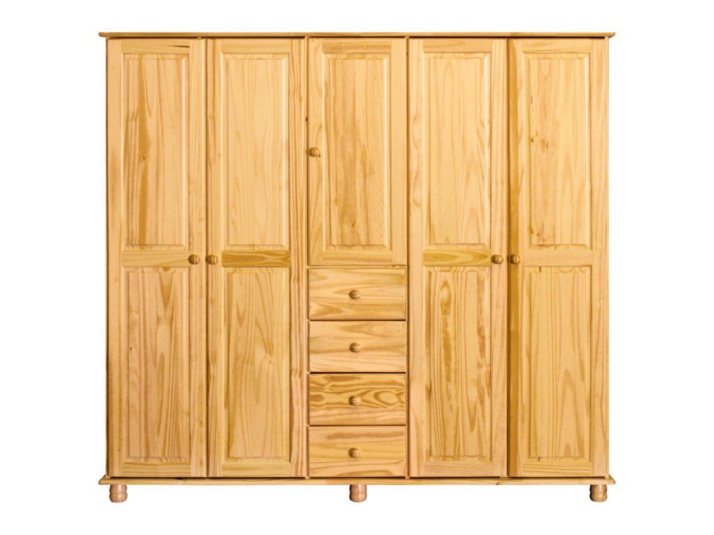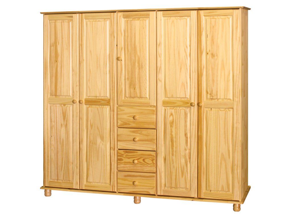 materiál masiv borovice, lakované provedení čtyři zásuvky s kovovými pojezdy v levé části dvě šatní tyče, ve střední části 1 police a v pravé části 3 police doporučený nástavec 8855