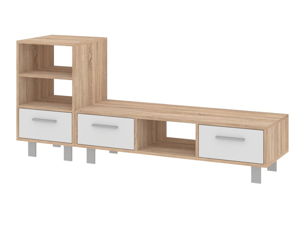Elegantní a funkční TV stolek MONREAL s vysokými nohami přináší do vašeho interiéru moderní design a praktické využití. Tento stolek nabízí dostatek úložného prostoru díky třem prostorným zásuvkám, otevřeným policím a nízkému regálu, který můžete využít pro uložení elektroniky, knih nebo dekorací. Vysoce kvalitní materiály a precizní zpracování zajistí dlouhou životnost a stabilitu. Díky jeho nadčasovému vzhledu a vysokým nohám se stolek snadno hodí do různých typů interiérů, ať už moderního, nebo klasického stylu.
