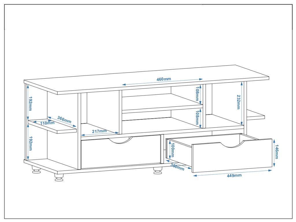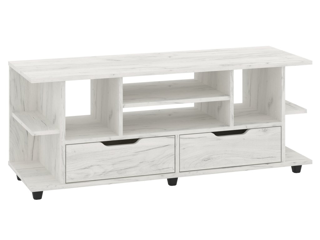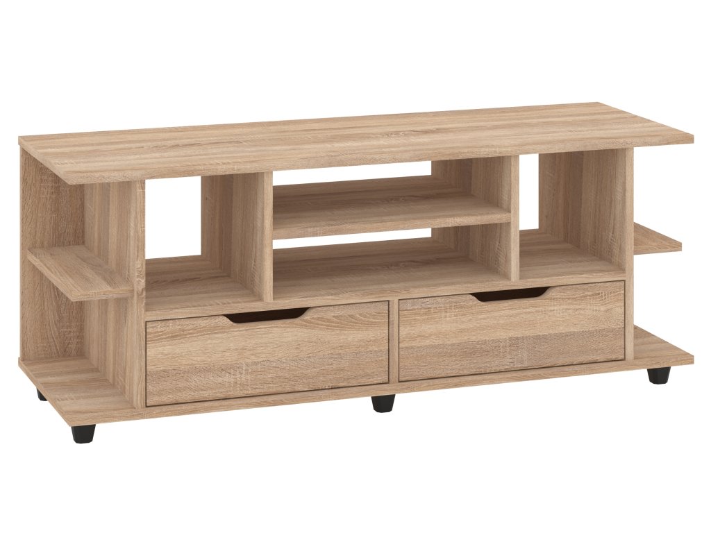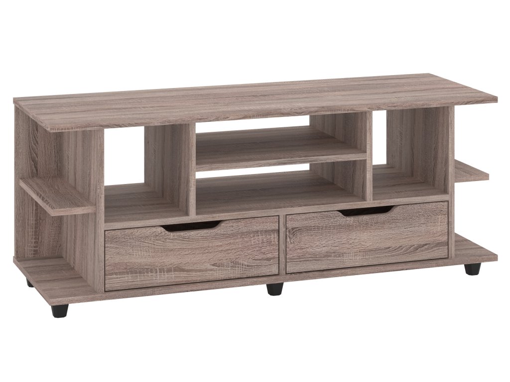 - Funkčnost a úložný prostor: TV stolek s praktickými zásuvkami a policemi pro maximální využití prostoru a organizaci.