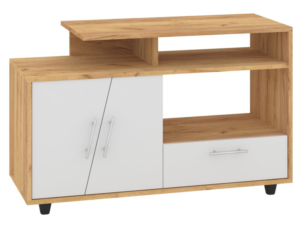 Stylový TV stolek Rio je ideálním doplňkem pro vaši obývací místnost. Nabízí dostatek úložného prostoru díky kombinaci dvířek, zásuvky a otevřené police. Tento elegantní kousek nábytku se skvěle hodí k moderním interiérům, ale i k těm, které mají klasický nádech. Stolek je vyroben z kvalitního materiálu s důrazem na detail, což zajišťuje dlouhou životnost a odolnost. Prostorná zásuvka vám umožní schovat ovladače, kabely a další drobnosti, zatímco otevřená police poskytuje místo pro vaše elektronické zařízení nebo dekorační předměty.