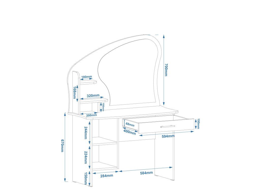 - Praktický úložný prostor: 3 zásuvky a otevřená police umožňují snadné a přehledné uspořádání všech vašich kosmetických potřeb.