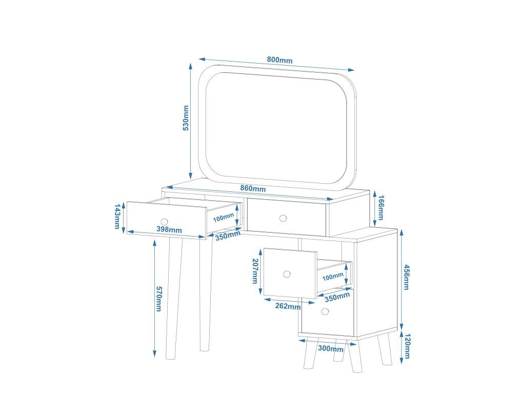 - Praktické zásuvky: Uložíte do nich všechny své kosmetické potřeby, šperky, nebo jiné drobnosti a udržíte tak prostor čistý a uspořádaný.