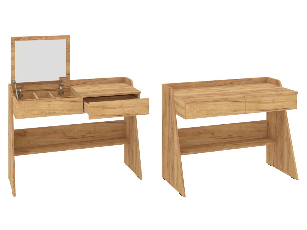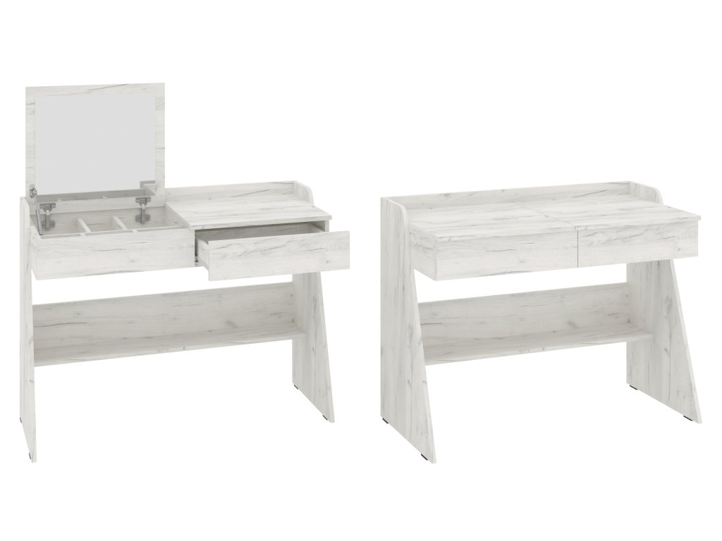 - Praktické úložné prostory: Sestava obsahuje prostornou zásuvku, která vám umožní ukládat kosmetiku, šperky, nebo jiné drobnosti, což udrží vaši plochu čistou a organizovanou.