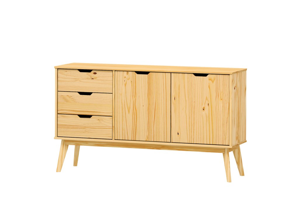 materiál masiv borovice, lakované provedení 3 zásuvky s kovovými pojezdy, 2 dvířka, 1 police
