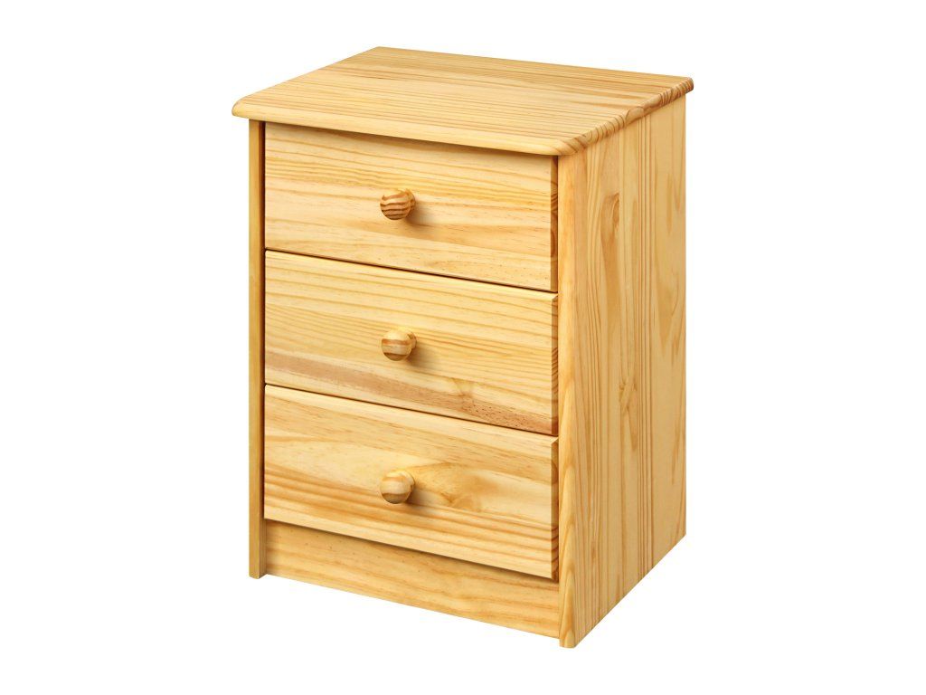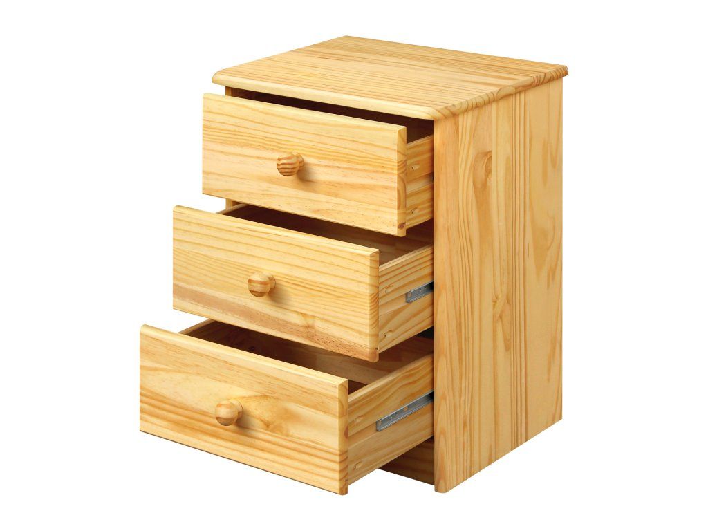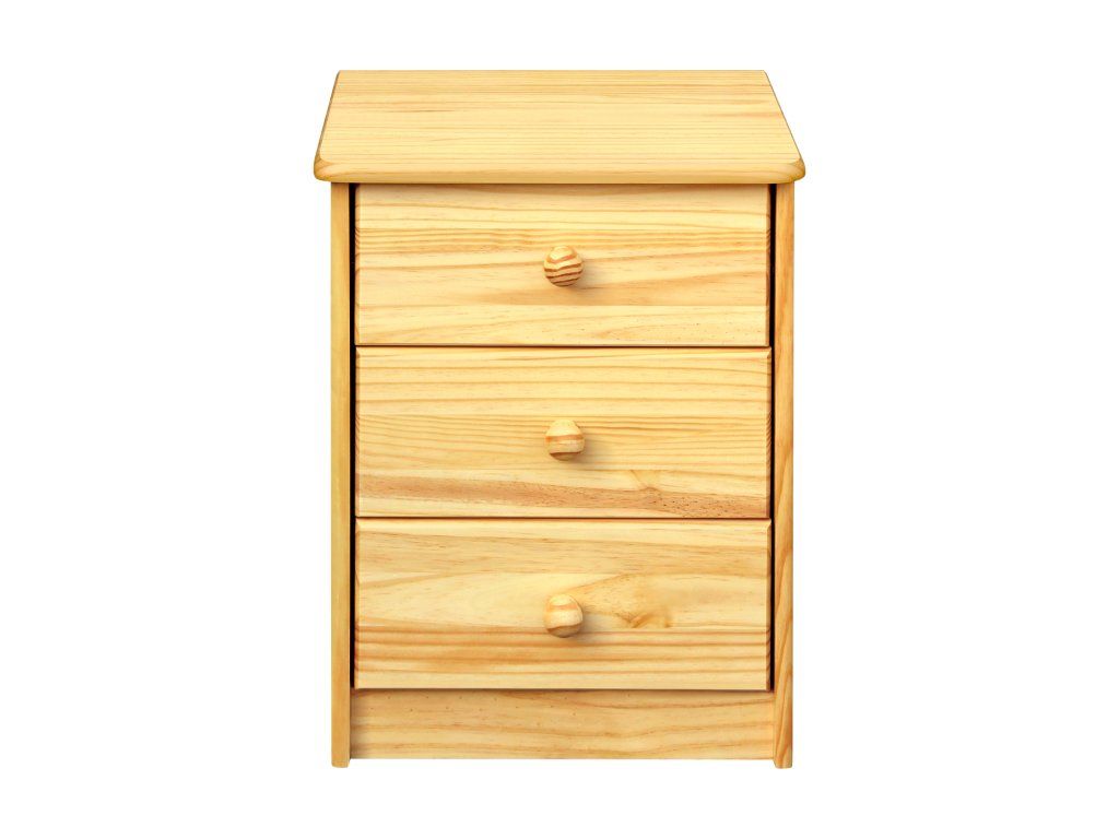materiál masiv borovice, lakované provedení 3 zásuvky s kovovými pojezdy, hloubka zásuvky 27,5 cm