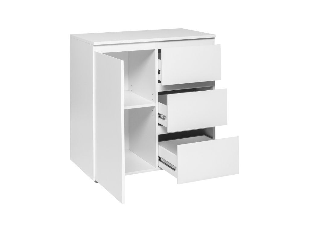 barevné provedení bílá 1 dveře, 1 police, 3 zásuvky s kovovými pojezdy