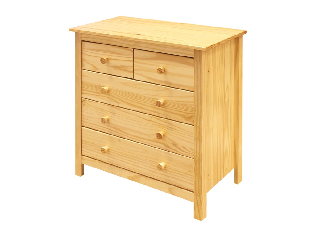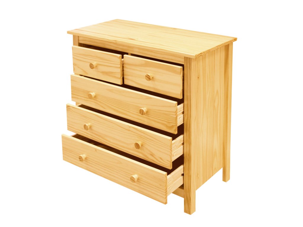 materiál masiv borovice, lakované provedení 2 menší a 3 větší zásuvky s kovovými pojezdy