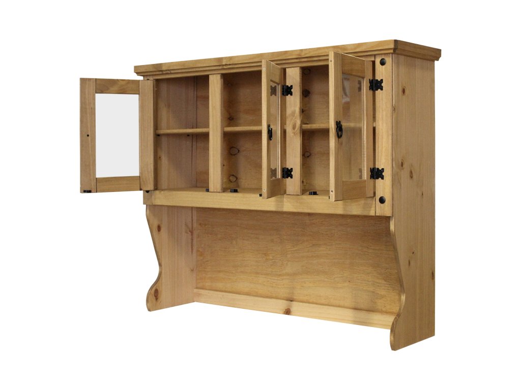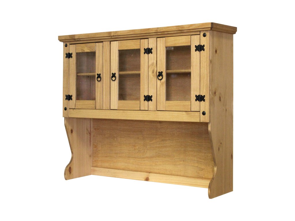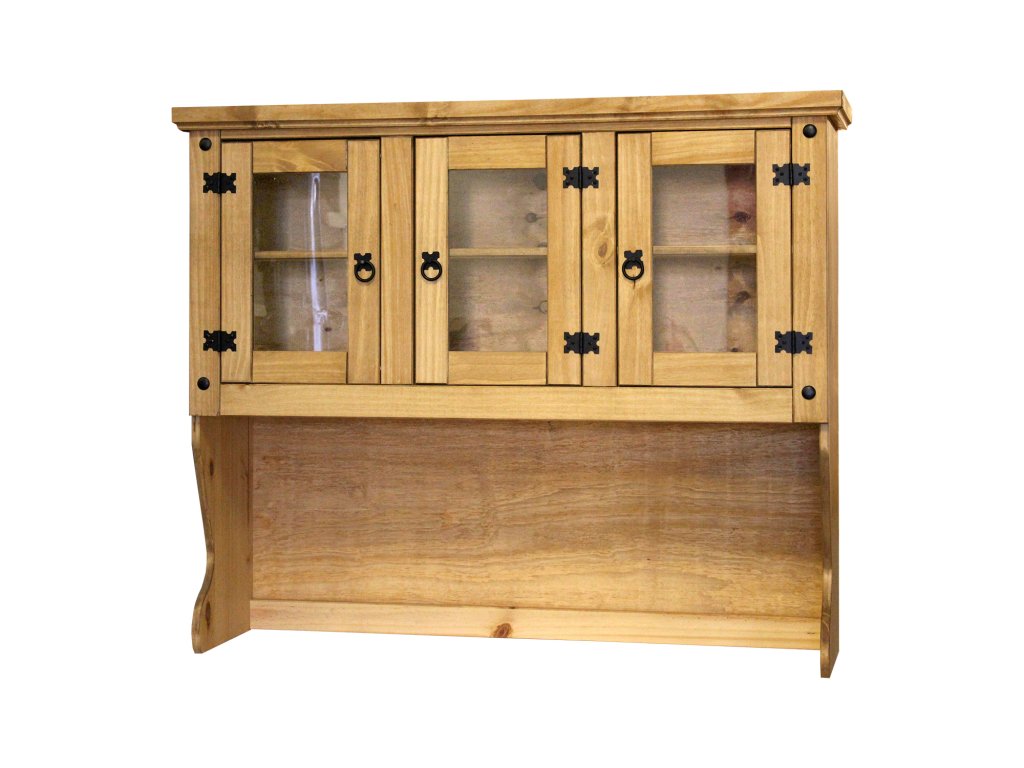 materiál masiv borovice voskovaná v medovém odstínu 3 prosklená dvířka, 1 police, kovové ozdobné úchytky vhodný doplněk ke komodě CORONA 1639 nebo 1632 součást sestavy Corona