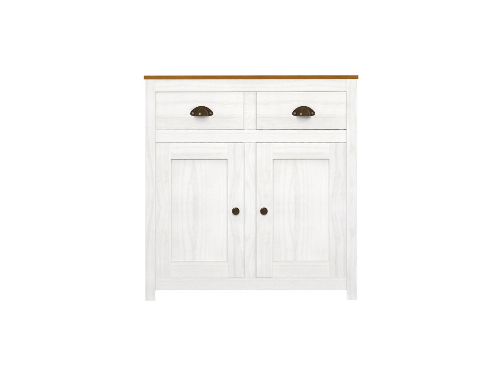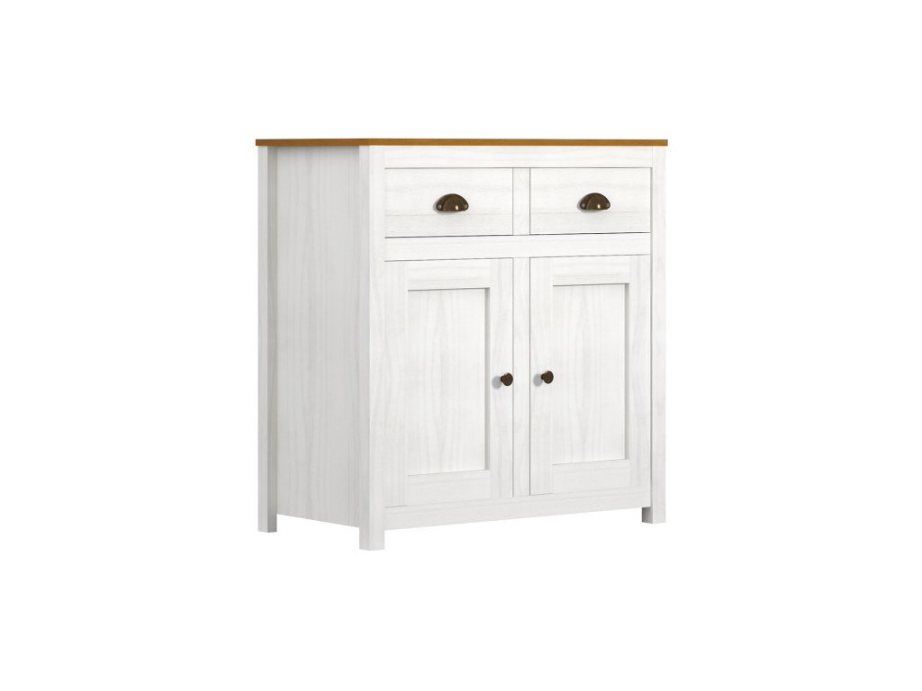 materiál masiv borovice, barevné provedení bílý / hnědý lak 2 zásuvky s kovovými úchytkami a pojezdy, 2 dveře