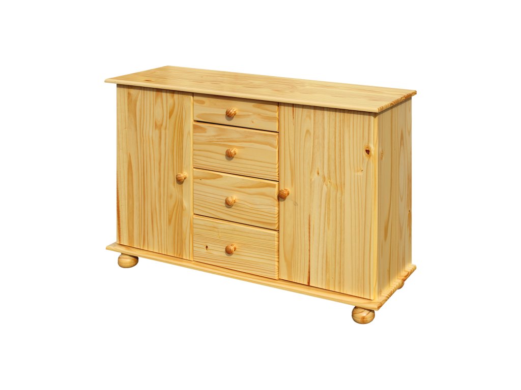 materiál masiv borovice, lakované provedení 4 zásuvky s kovovými pojezdy, 2 skříňky s dvířky vybavené policí vhodný doplněk nástavec 8046