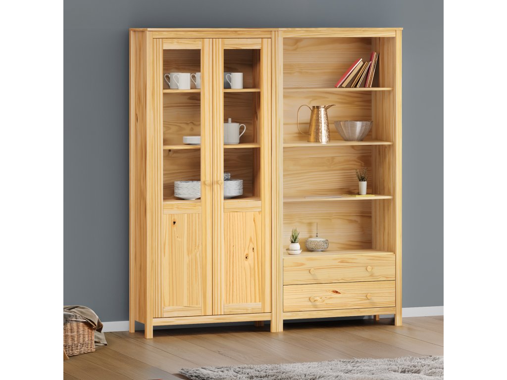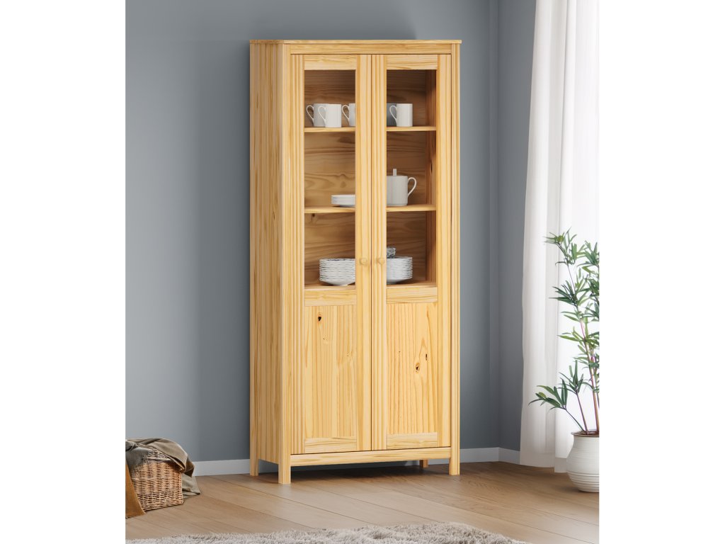 materiál masiv borovice, lakované provedení dvoje částečně prosklené dveře, čtyři police